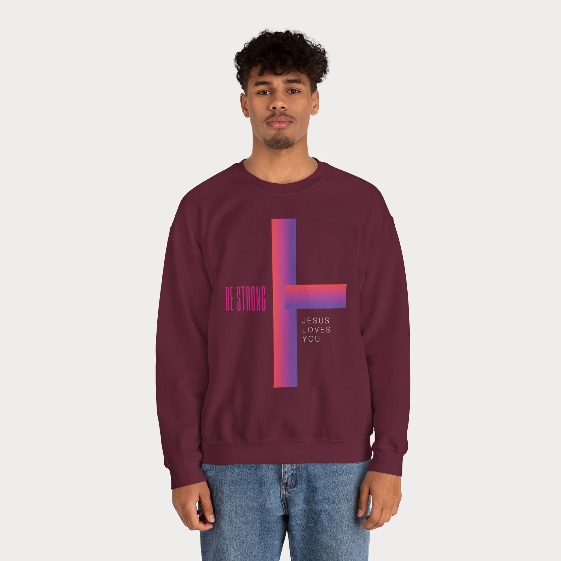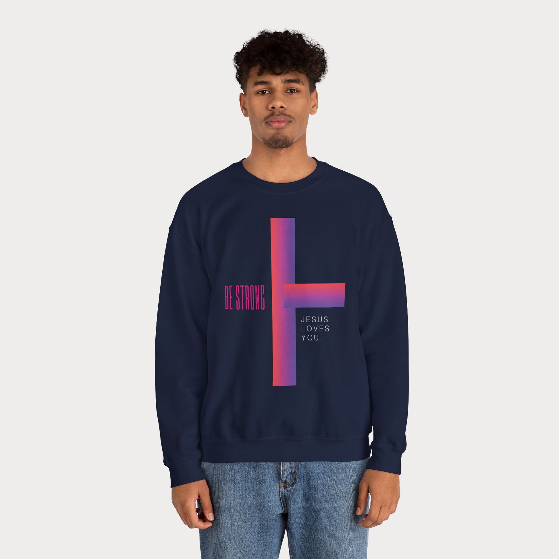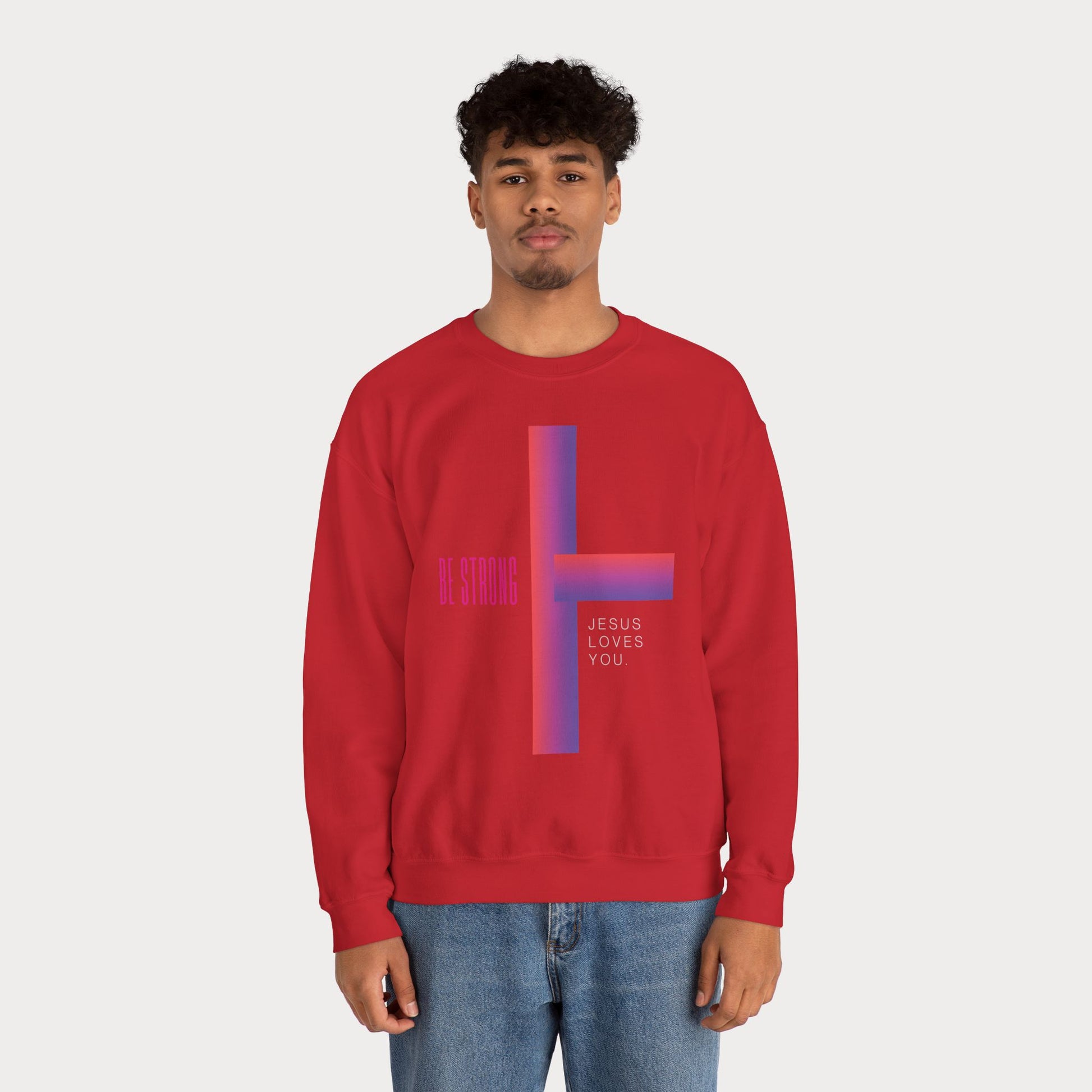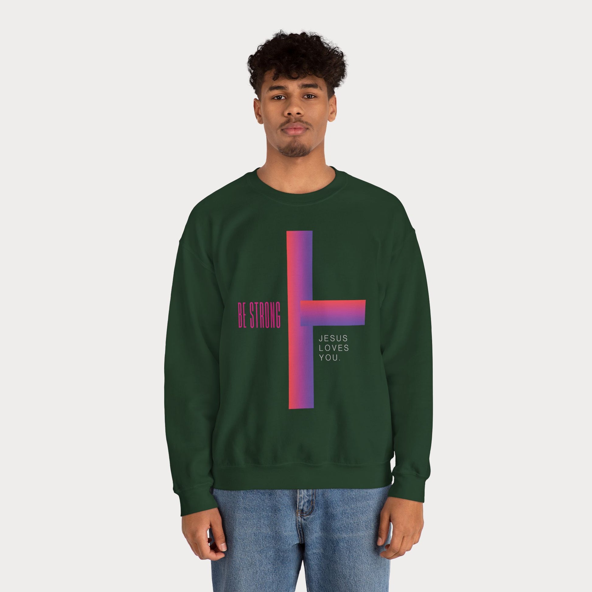 Cross: Jesus Loves You Be Strong Crewneck Sweatshirt